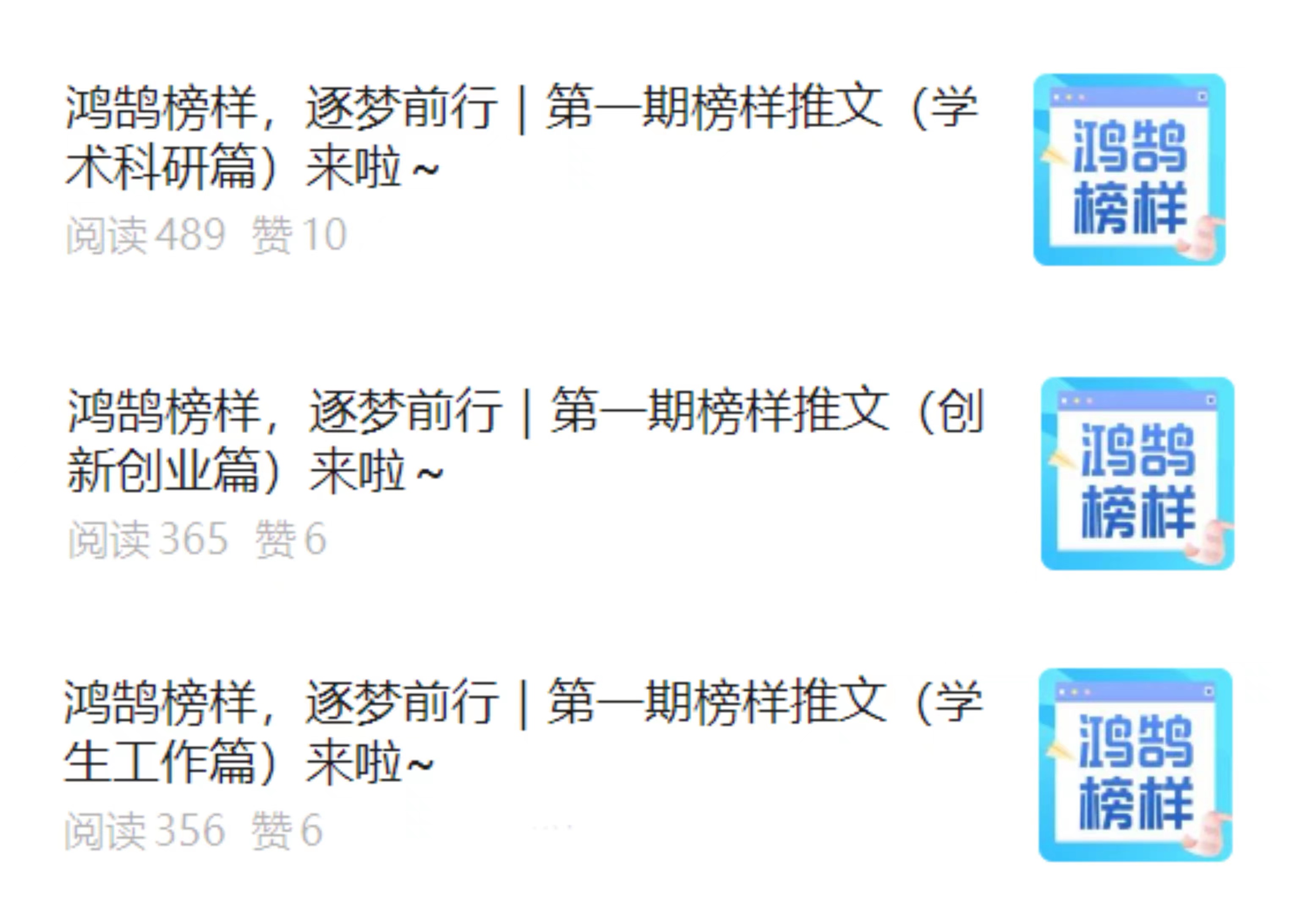 至今,学业帮帮堂已开展三期活动,2023年11月6日的国奖经验分享会、12月11日的“鸿鹄榜样,逐梦前行”系列榜样推文及本期活动。