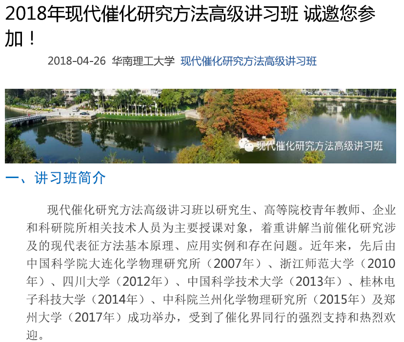 关于2018年现代催化研究方法高级讲习班开班的通知