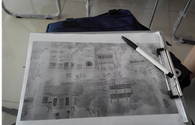 钟村印象,我们的钟村我们来描绘;画中钟村,美丽的钟村笔画中呈现。这就是我们钟村印象绘画课的理念,文化的理解与保护不能马虎,所以队员们一次又一次地画中相片中的钟村特色,而且为了能让孩子们更好地了解和描绘心中的钟村特色,队员们还绞尽脑汁地将相片中的场景简化,在不断地尝试中我们画出一套完整的Q版钟村地标。