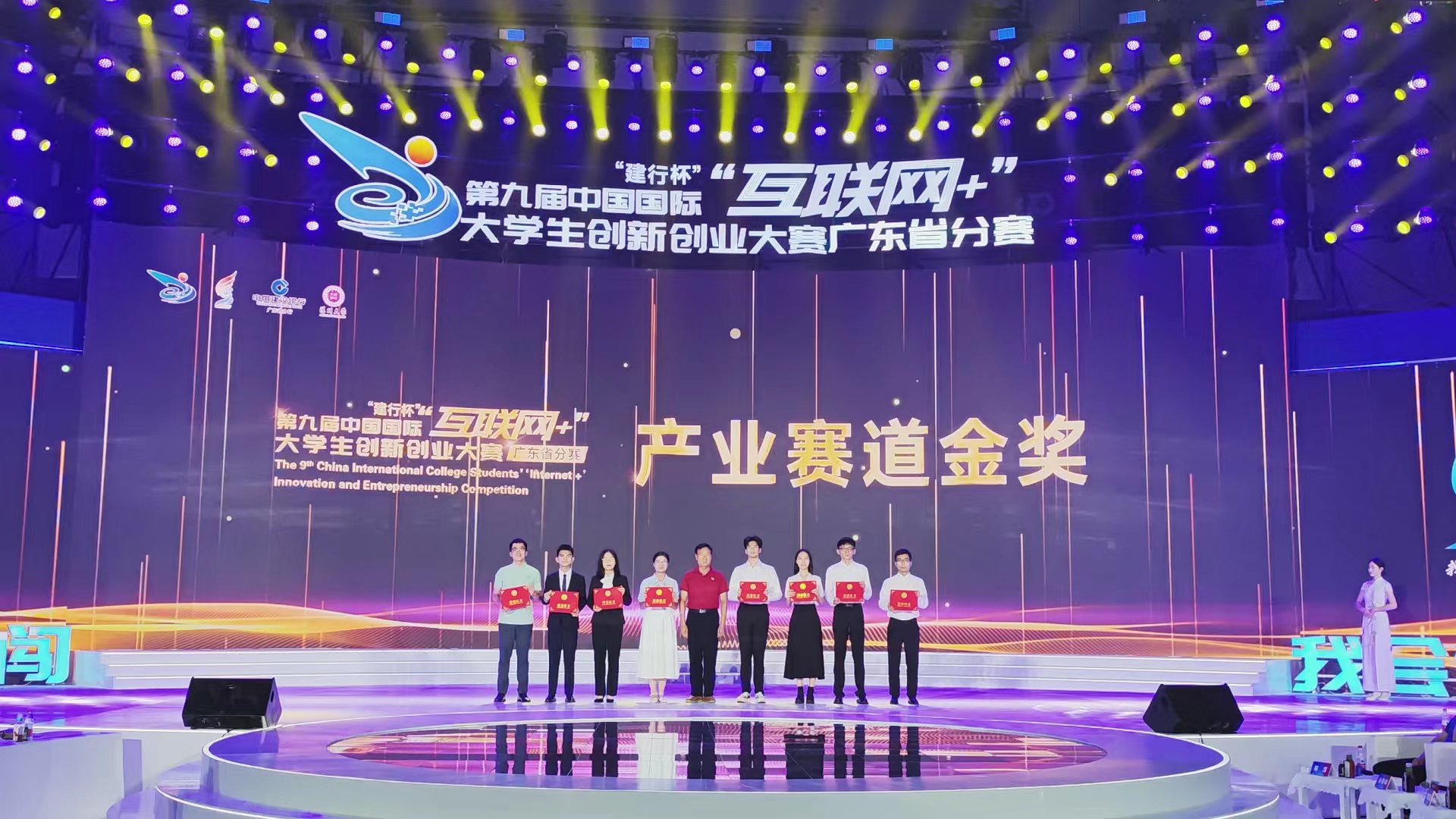 图|产业赛道金奖获奖项目代表合影(左二为射龙门游戏