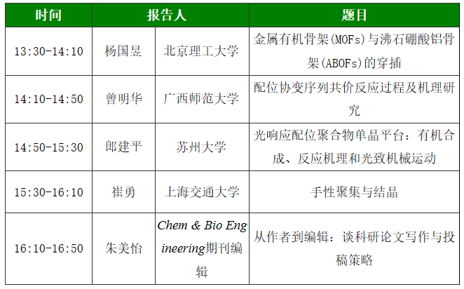 崔勇 教授,上海交通大学 题目:手性聚集与结晶 |