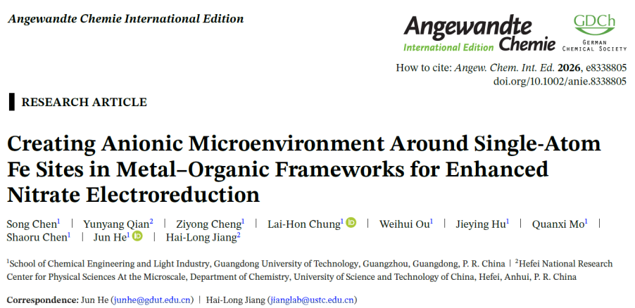 近日,我校何军教授团队联合中国科学技术大学江海龙教授团队,在化学顶刊《Angewandte Chemie International Edition》发表重要成果。研究以天然来源的鞣花酸为原料,创制出新型阴离子MOF材料SU-102,并精准负载单原子铁,成功开发出高效、稳定、低成本、可规模化制备的电催化剂SU-102-Fe,攻克中性条件下硝酸盐电还原制氨难题。