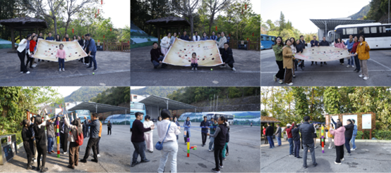 接着,绿树掩映的公园广场化身为团队协作的“战场”。在“重走长征路”、“合力建塔”等素质拓展项目中,各小组以默契为舟,以智慧为桨,或在地图路线中重温红色精神,于细节把控间彰显全局视野;或在绳索牵引下校准平衡支点,在沟通协作中筑牢“高塔”根基,共同谱写出一曲关于信任、担当与团结的春日乐章。