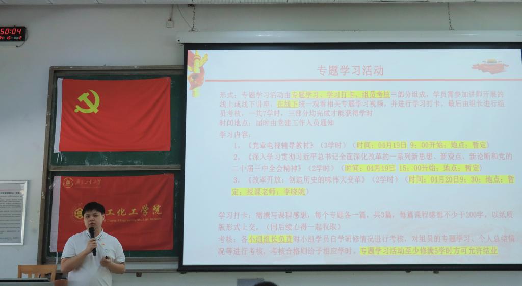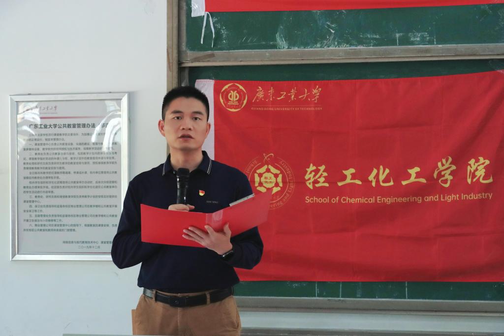 青年当以知行合一的治学态度践行“勤奋、求是、创新”的广工精神和“明德化智,尚工笃行”的院训精神,用智慧的火花点燃创新引擎,以奋斗的汗水浇灌学术硕果,以青春之我、奋斗之姿书写新时代答卷。最后,他特别提到了学院近期发出的“学生宿舍晚熄灯”倡议,指出入党积极分子应积极响应学院倡议,培养良好的作息习惯,发挥先锋模范作用,以身作则,带动学院学生共同营造温馨、和谐的宿舍环境。
