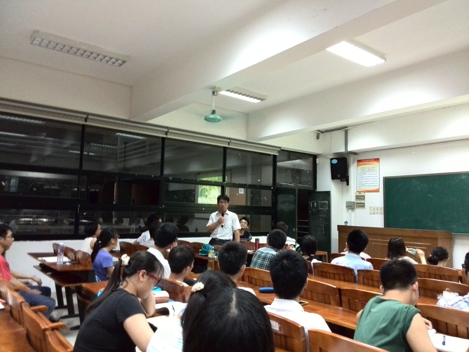 主讲环节 ,化卓2班程玉虺、应化2班李浩先后发言,指出了本班普遍存在的学业规划方面的问题,程玉虺认为同学们在时间管理方面存在比较突出的问题,表现为:缺乏时间观念,学业与社团工作时间分配不合理,盲目地做兼职、沉迷于打游戏而耽误了许多宝贵的时间等。程玉虺提出班级要引导同学们早日明确读大学的目标,并养成良好的学习习惯来推动班级学风的建设。应化2班李浩则以大家的高中生活为例,认为高中阶段之所以忙碌充实,积极进取就在于有明确的“高考高分”目标,大学也一样要制定正确的目标,“目标是我们奋进的最根本的动力,有了目标才能更好的规划我们的大学生活”。